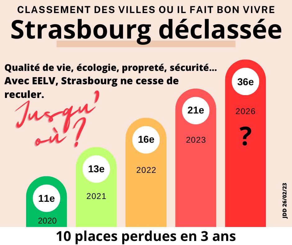 Résultat à la mi-mandat des verts ? Moins d’attractivité et moins de qualité de vie… Nous perdons sur tous les plans et la qualité de vie ne cesse de se dégrader comme le constatent de trop nombreux Strasbourgeois chaque jour…