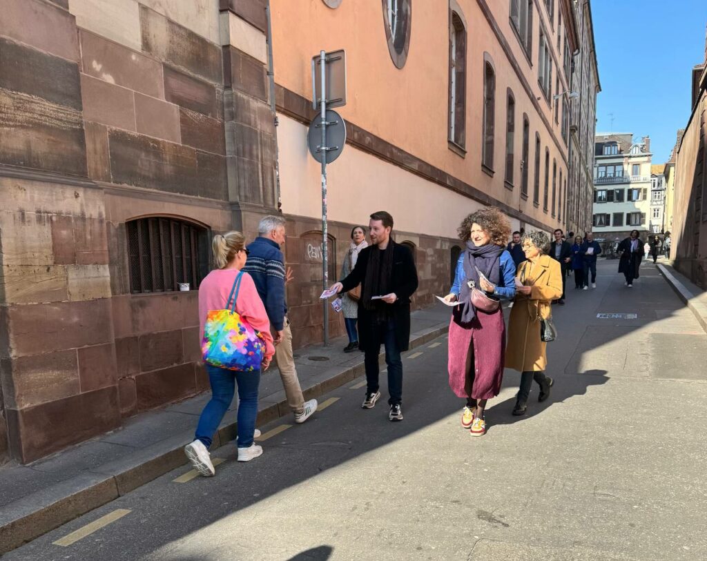 Avec Rebecca Breitmann et les bénévoles de l’association, nous avons parcouru la ville de Strasbourg pour présenter nos propositions concrètes à mettre en œuvre pour faciliter la vie des femmes au quotidien.
