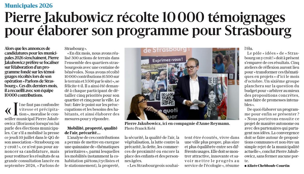 Avec « Strasbourg on y croit », nous avons voulu poser les fondations d’une maison commune ouverte à toutes celles et ceux qui croient en notre ville et veulent la faire avancer. Loin du rejet ou du ressentiment, nous voulons proposer, rassembler et construire une alternative à la hauteur des attentes exprimées sur le terrain.