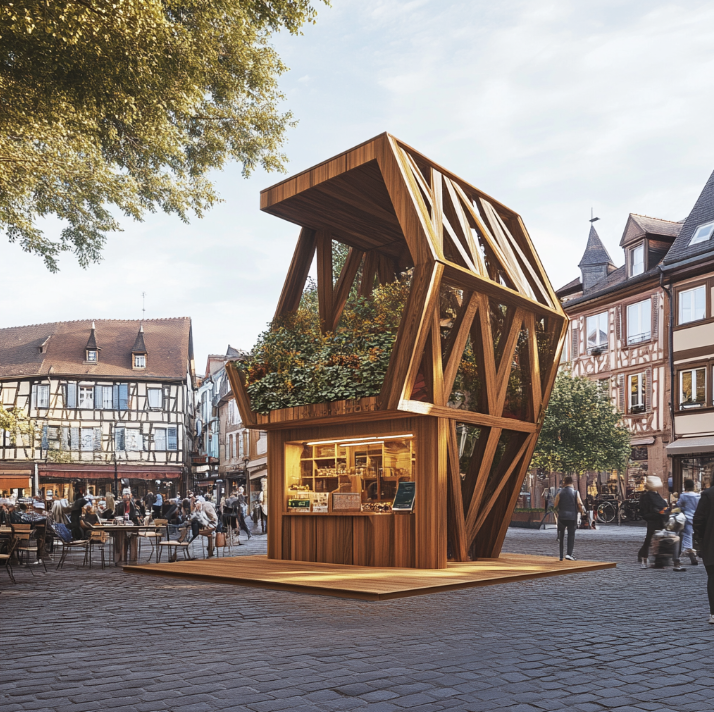 Les Koeurs de quartier ont une vocation architecturale importante et permettront de redonner aux quartiers leur fierté car ils constitueront en eux-mêmes des points d’intérêts forts et essentiels. Chaque kiosque sera unique et fera l’objet d’un concours d’architecte européen afin de créer un parcours touristique de 12 kiosques, 12 objets architecturaux, répartis équitablement dans toute la ville. Une constellation de “12 étoiles” européennes pour sortir la capitale européenne du Wacken. Parmi l’éventail des possibilités, quelques exemples de Koeurs imaginés par notre responsable des projets urbains :