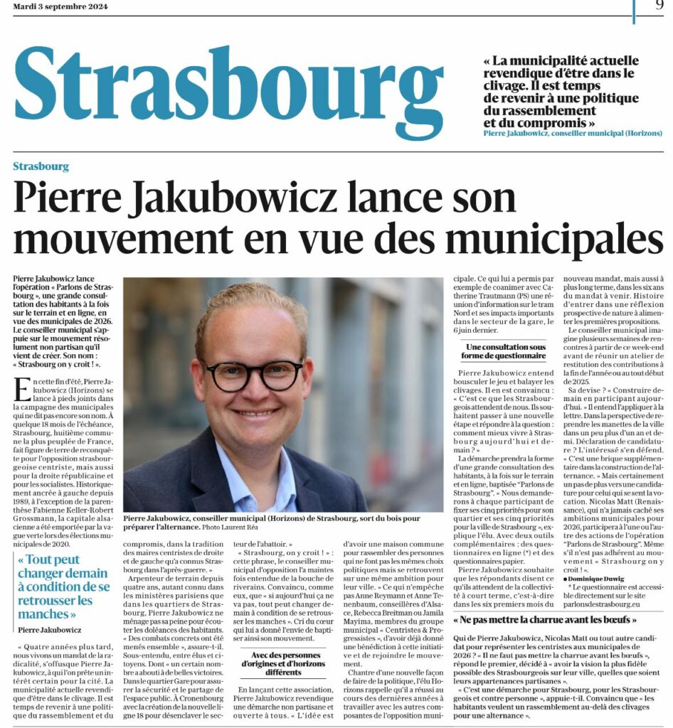Retrouvez ci-dessous l’article publié dans les Dernières Nouvelles d’Alsace du 2 septembre sur le lancement de Strasbourg on y croit ! 👇