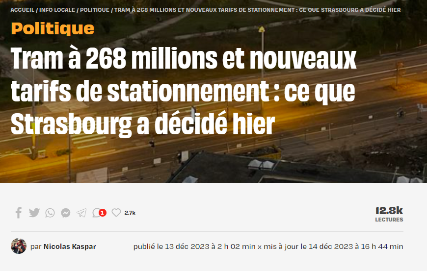 Vous trouverez ci-dessous la revue de presse des articles revenant sur le débat aillant eu lieu au Conseil municipal de Strasbourg ce mardi 12 décembre dernier. N’hésitez pas à cliquer sur les articles pour en découvrir le contenu !