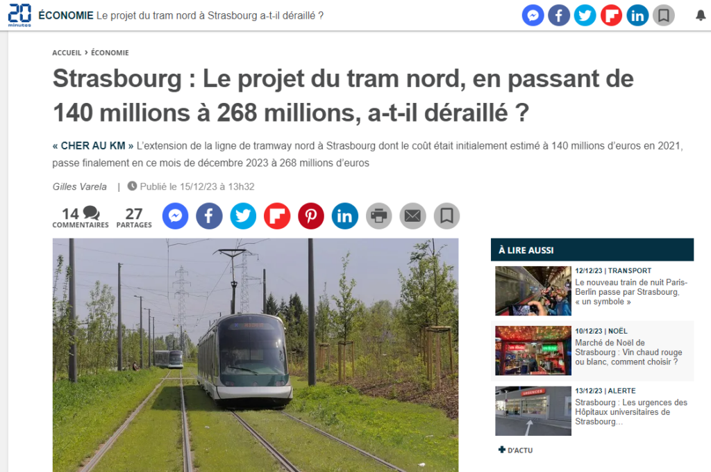 Un Tram Nord à 268 millions d’euros : le plus cher de l’histoire !